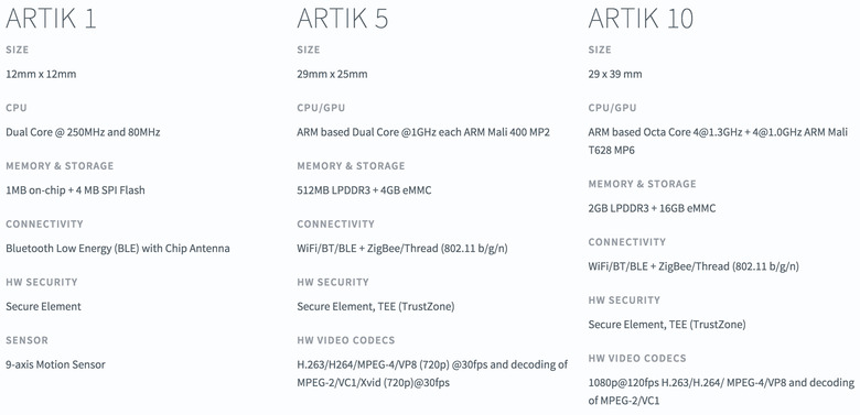 Finally, there's ARTIK 10. Its specs sound more akin to a high-end smartphone, with an octacore processor capable of 1080p encoding/decoding and 5.1-channel surround sound.