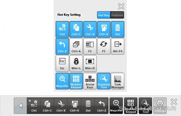 Touch Supporter is a rather un-intuitive addition to the touch interface that, again, feels like Samsung saw some holes in the Windows 8 touch environment and added a toolkit to keep you active as you were before you were relying on a touchscreen keyboard. You can use this toolkit to clip text, work with a floating keypad, and create some new key combinations for your onscreen keyboard.