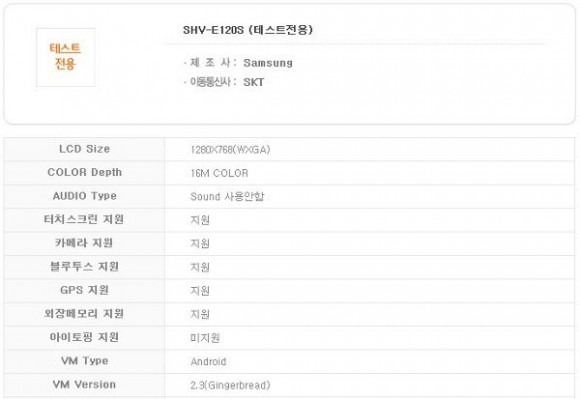 A new device has landed on the Samsung Developer Center and it has little in the way of details. The listing gives a part number of SHV-E120s. There is no mention of if the listing is a smartphone or a tablet. The screen resolution is listed as 1280 x 768 with 16 million colors. Geeks love a good new gadget mystery and this is one of the better ones we have had lately.