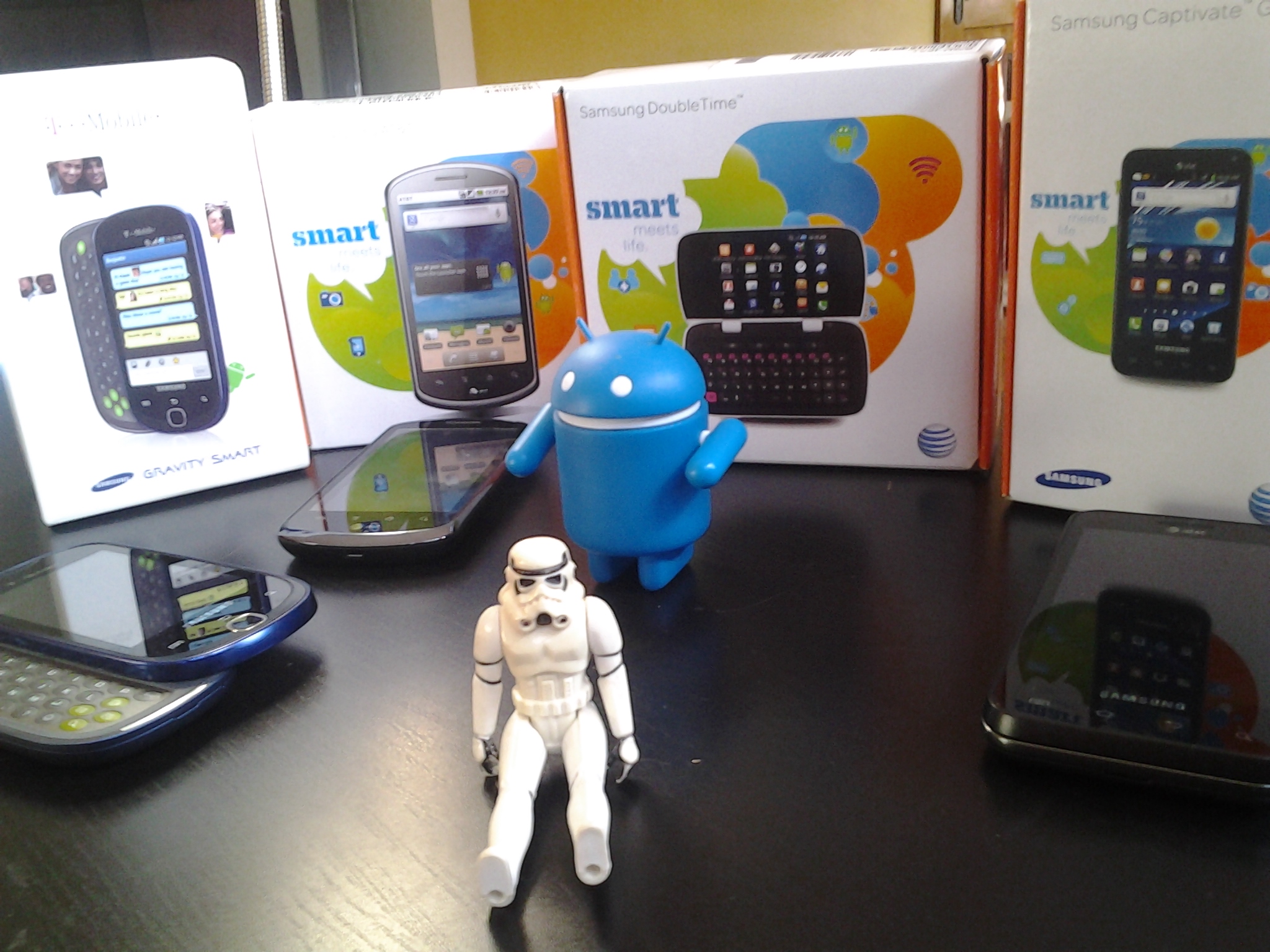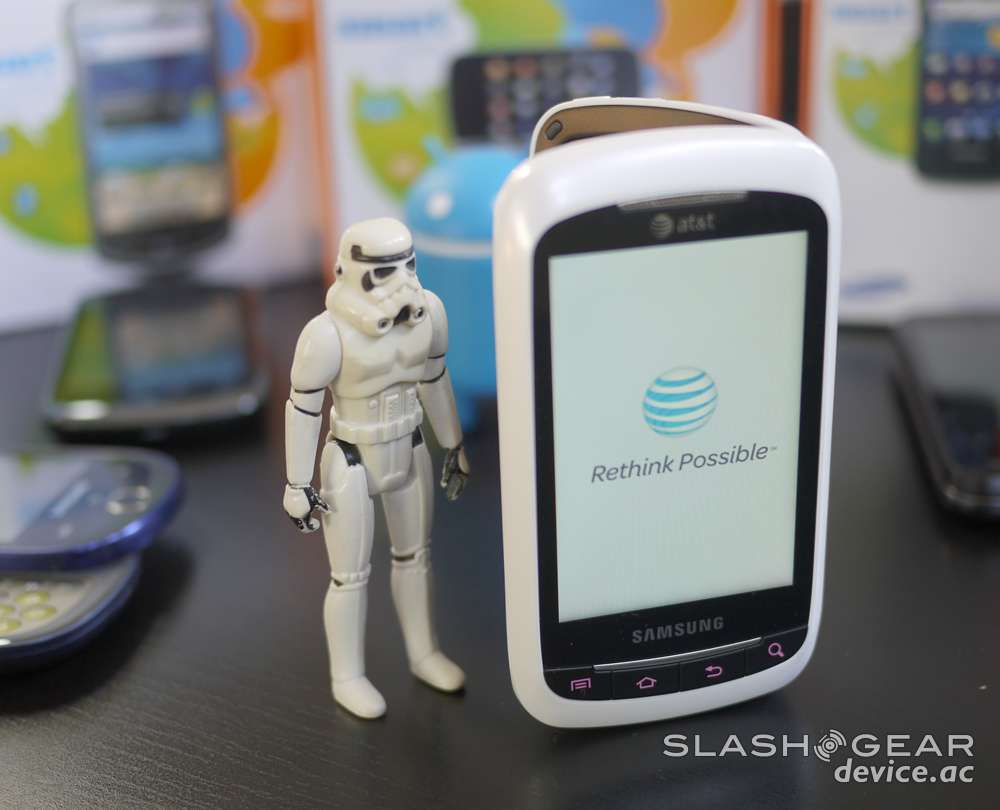 Android and Samsung have such an all-encompassing strategy going on as of late that every tier of the smartphone market is saturated with a combination of the two, from the top all the way to the bottom – a good example of how to do the bottom RIGHT is in the device you see here, the Samsung DoubleTime. What we're going to compare this device to are a few other similarly-stacked devices on AT&T, but you'll understand before the end of this that AT&T's selection of Android devices relies so heavily on top-tier smartphones that the Samsung DoubleTime may well have a market to do well in. Imagine that!