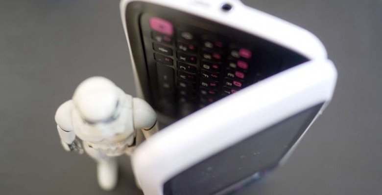 This little stormtrooper of the device has the oddest set of design cues, starting with the fact that it's got pink accents on the physical Android menu buttons. Very strange choice by Samsung if I do say so myself. There's a silvery plastic bar above the keys, Samsung and AT&T logos on the front, earpiece, and both proximity and light sensors. The device opens up like a clamshell the long way and sits at either a 135 or 180 degree angle when opened. Inside you'll find the second of two 320 x 480 pixel displays on one side, a full QWERTY keyboard on the other side with what you'll find is the reason for the pink accents on the outside: pink accents on the inside.