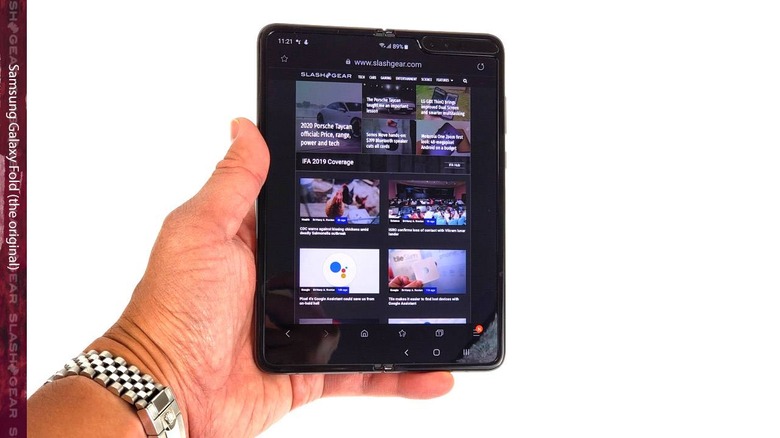 That new panel technology addressed one of the early complaints about the original Galaxy Fold, in that its flexible OLED panel felt delicate and plasticky in comparison to the touchscreen of most modern, non-folding smartphones. Samsung's answer was "ultra-thin glass" sourced from German specialist Schott, which the phone-maker branded "Samsung Ultra Thin Glass" for its own purposes.