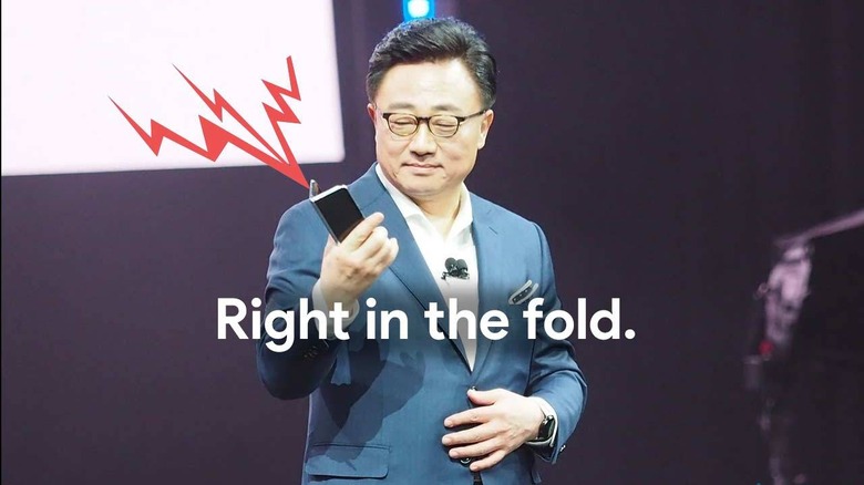 Next we've got Marques Brownlee, aka MKBHD, who pulled up on what appeared to be a screen protector on the Galaxy Fold's display. Turned out it was NOT a screen protector, and... this happened.