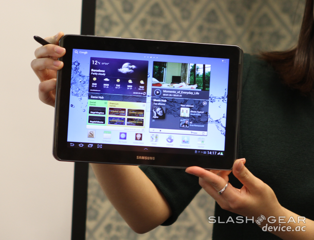 Both Adobe Photoshop Touch and Adobe Ideas apps are pre-installed on this device, your ability to use various tools, effects, layers, and full pen pressure sensitivity now at your fingertips. Draw with vectors, utilize layers, and access the full personal pen Photoshop experience all in one device. The 10.1 Note has Samsung Hub services as well as S Pen Apps as the original Galaxy Note does, S Suggest, Readers Hub, Video Hub, Game Hub, Music Hub, and Chat On amongst them. S Pen Apps include such classics as Slice It! and Comic Book as well as Catch Notes, Touchnote, and Hello Crayon. Each of these apps will be available inside Samsung Apps for the release of the device.