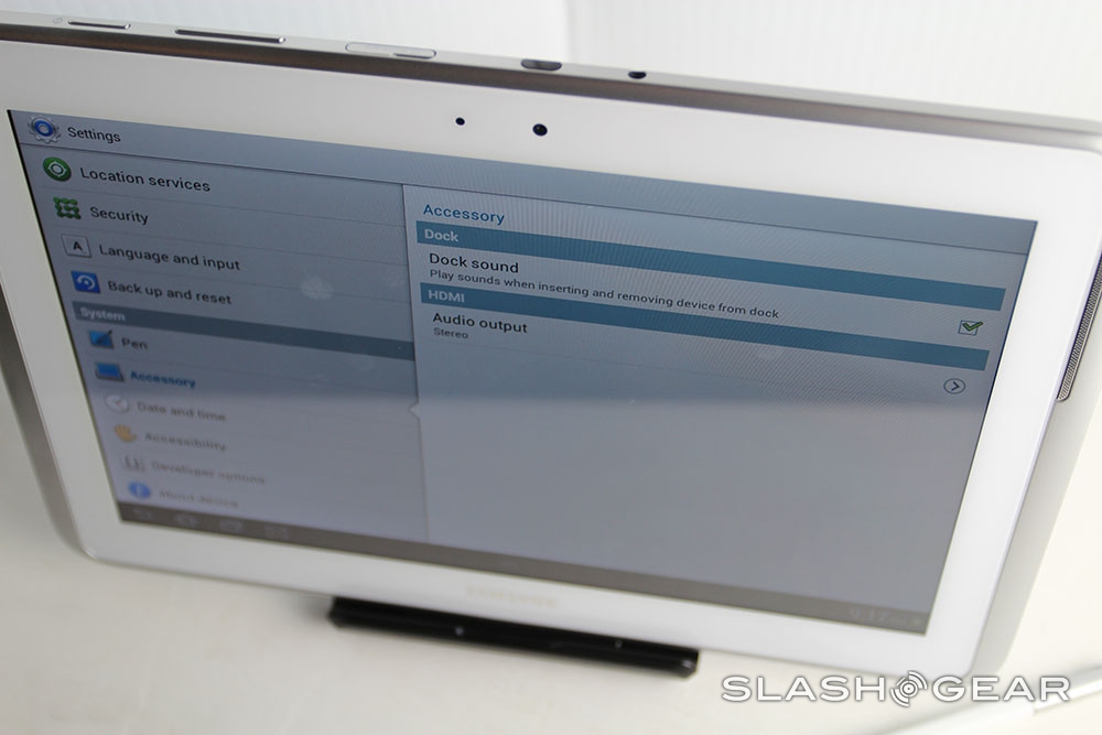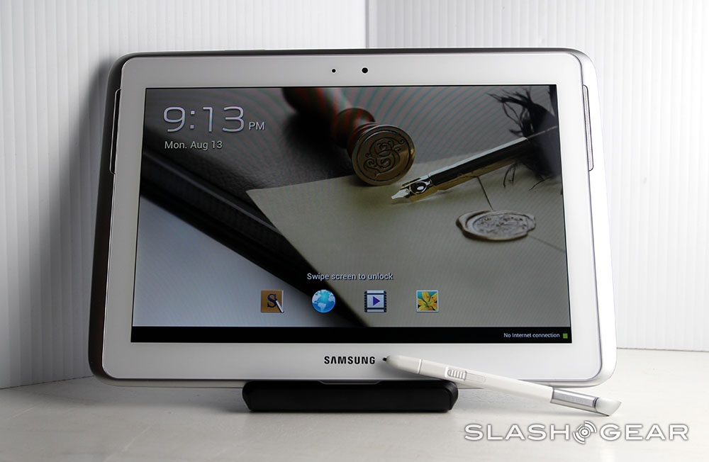 With your S-Pen you've got all the abilities of the Samsung Galaxy Note – the original – in a tablet-sized package. This S-Pen device works essentially the same as the first iteration of this Samsung line, but here it's built just a bit differently. The pen itself is a bit fatter, the same size as a standard Number 2 pencil if what Samsung told us back at MWC 2012 holds true, and the whole note-taking experience feels rather nice.