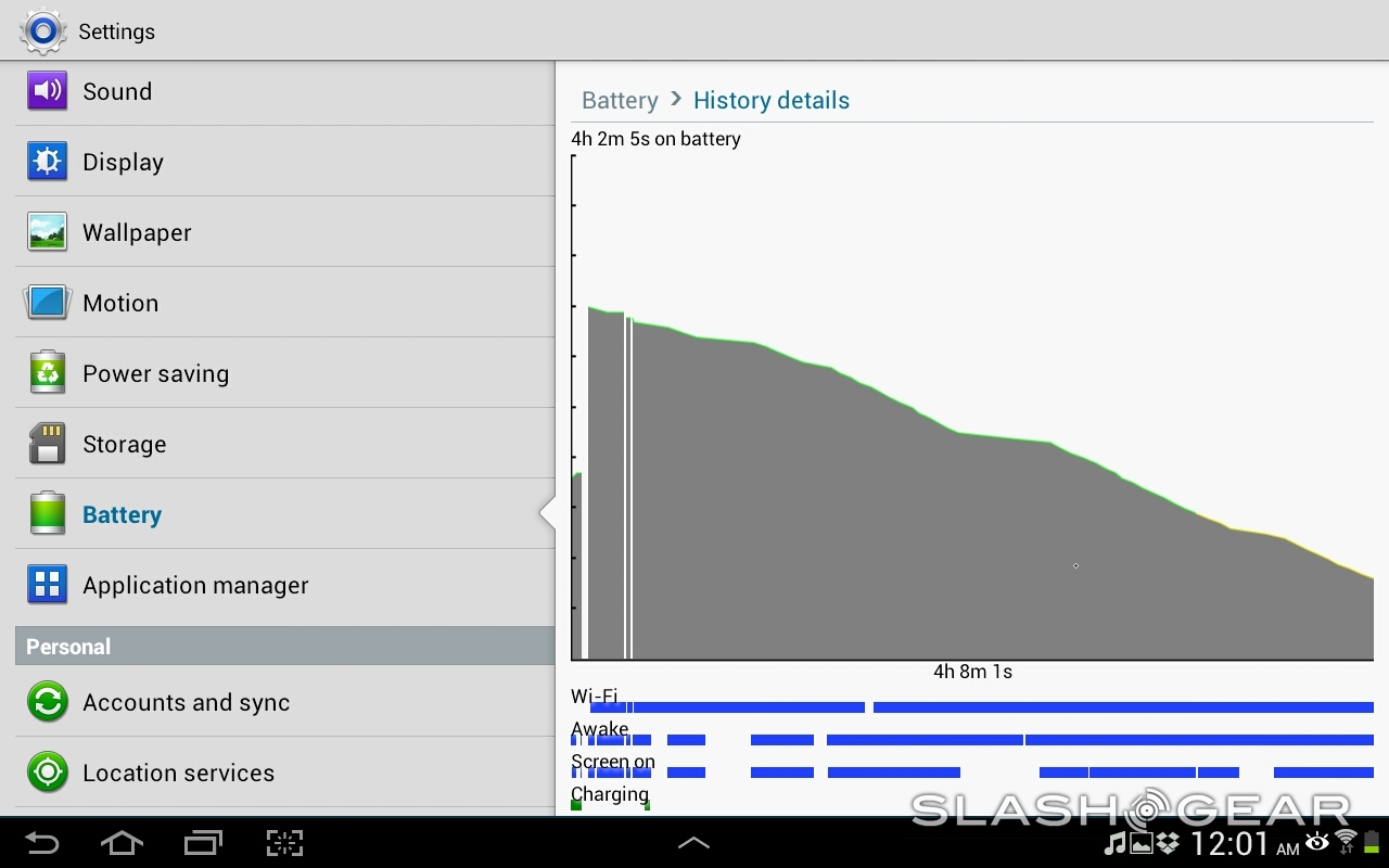 If you run this device rather hard, playing games, downloading gigantic files (like the videos and games we've looked at here) and using the S-Pen like wild, you'll find yourself limited to right around 6 hours of battery time. Even 7000mAh of battery can be drained quickly when the situation is right.