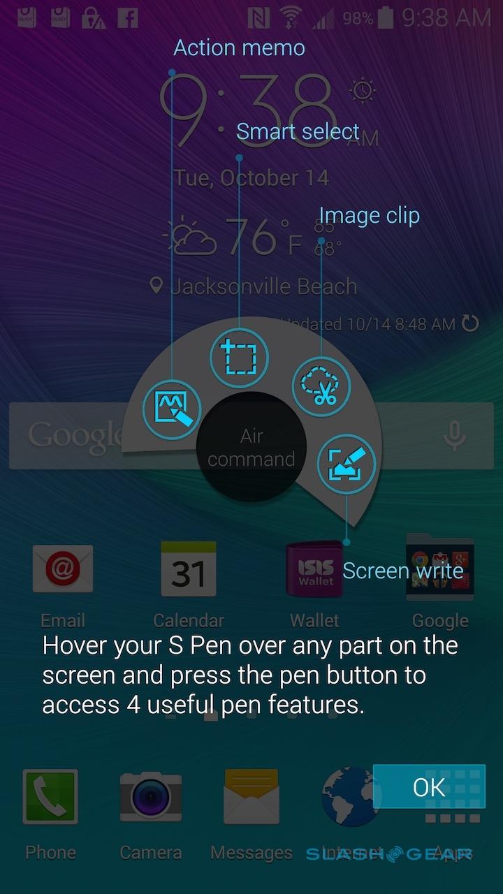 What, exactly, you can do with the S Pen has been improved and refined over each generation of Note, too. Yank out the stylus and, as before, the's a pop-up radial menu for Air Command, Smart Select, Image Clip, and Screen Write (you can get the same menu by tapping the barrel button with the S Pen hovering over the display) but some of the ways the S Pen interacts with text and images have been tweaked for the Note 4.