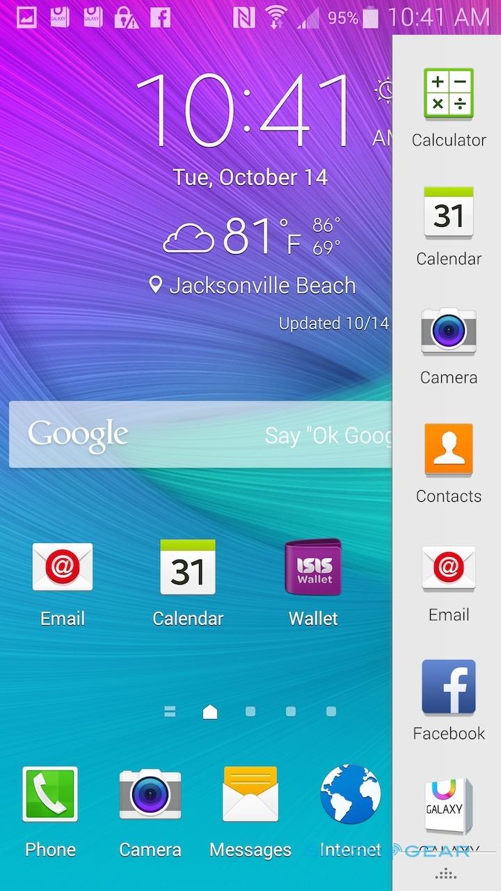 Actually accessing Samsung's screen convenience features is a little less ergonomic than, say, the Reachability feature on the iPhone 6: sometimes, when trying to swipe in and out from the edge to shrink down an app on the Note 4, I just ended up pressing on-screen buttons instead. Once you've managed it, though, it's more flexible than Apple's approach of simply bringing the top half of the interface down to the bottom half of the display.