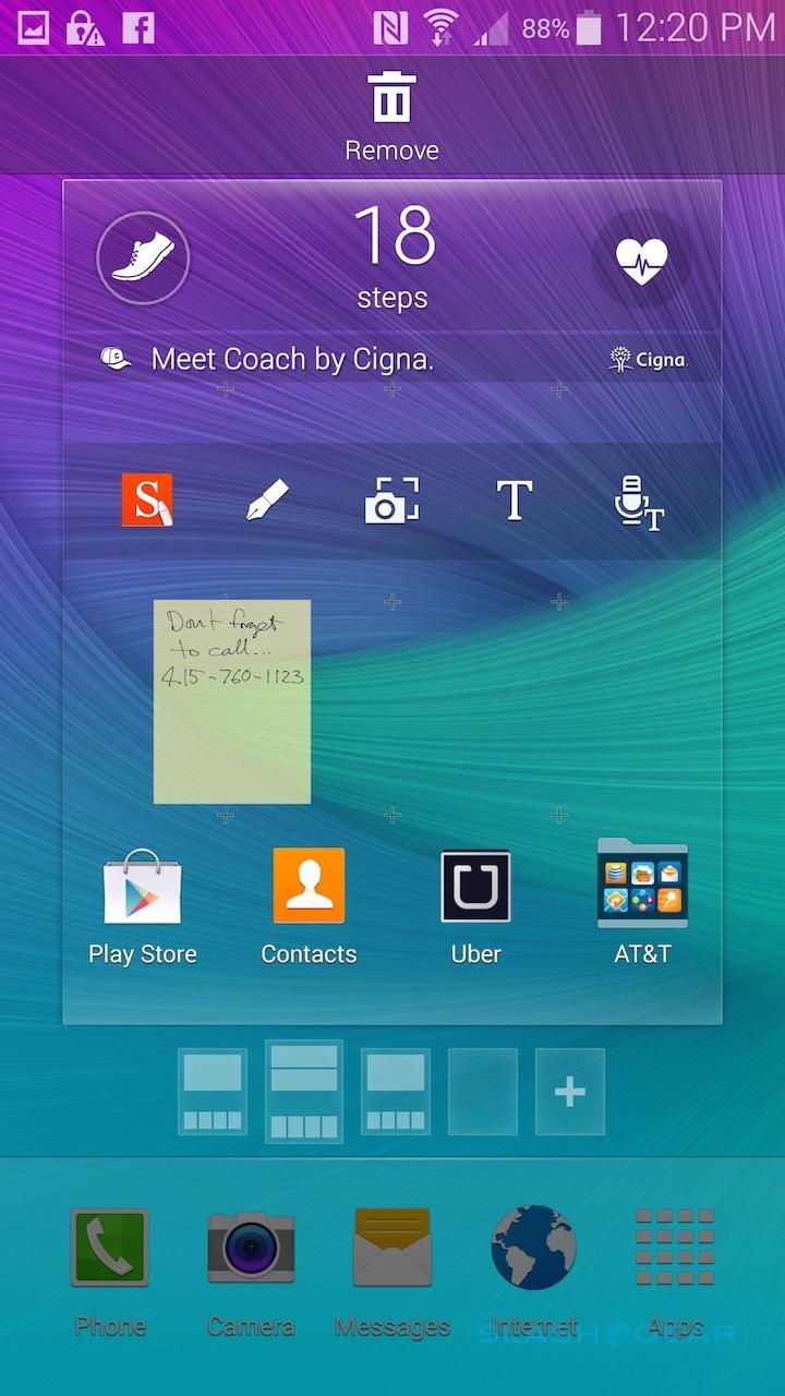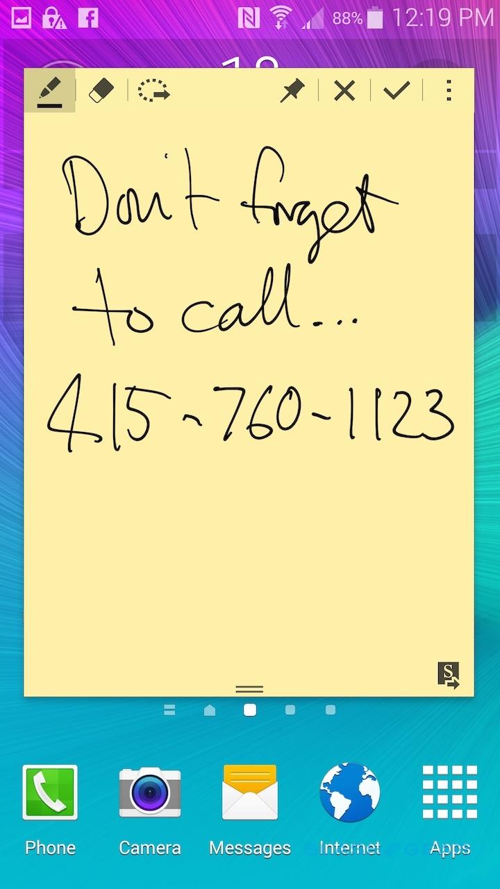 The Note 4 may not be the first phone to offer Quad HD, but it could be the first to take real advantage of it: one of the software features allows you to pin handwritten Post-It style notes to the homescreen, and even though they're roughly the size of a chunky icon, because of the resolution you can still read your own writing.