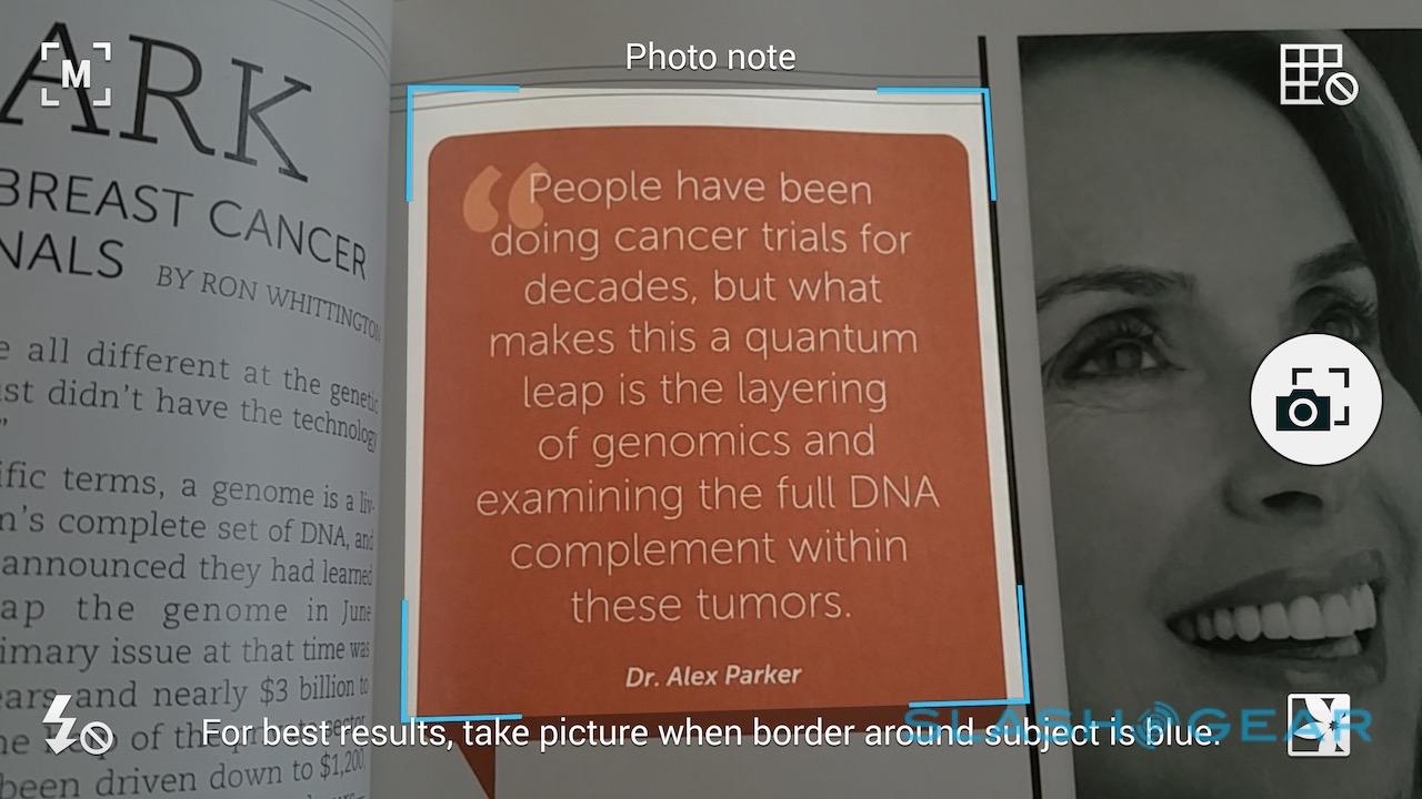 Photo Note, meanwhile, turns the Note 4's camera into a scanner of sorts. Snap a photo – say, of a whiteboard full of plans, or a recipe in a magazine – and Photo Note will attempt to convert that content into a digital version you can manipulate in the S Note app.