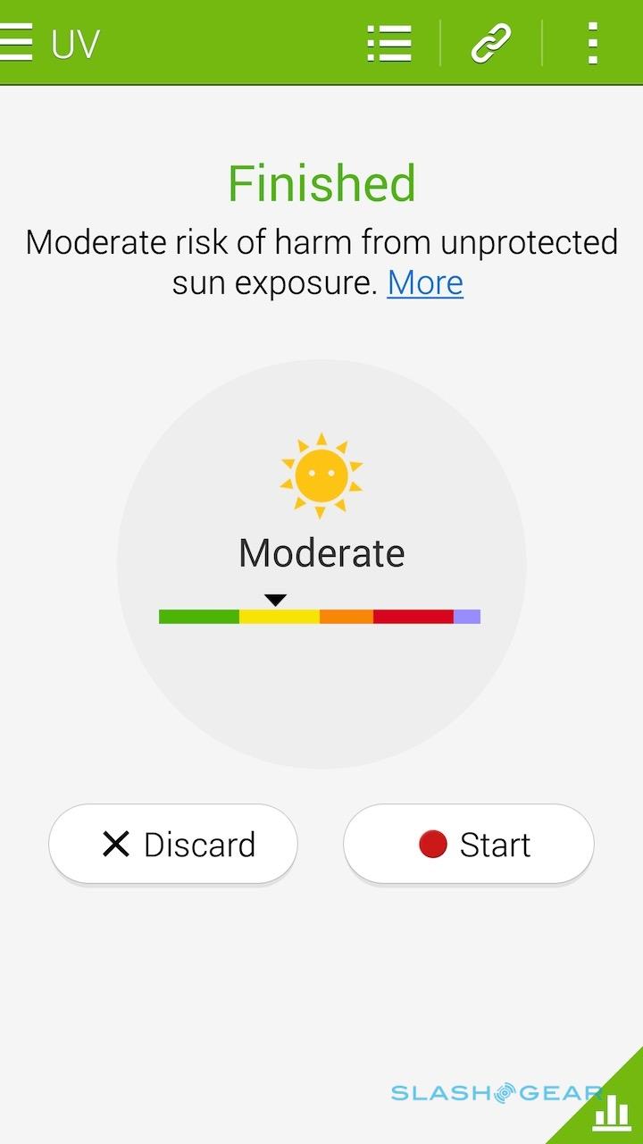 An ultraviolet sensor tracks UV levels in sunlight, and can help Samsung's S Health app to make sunblock recommendations. Finally, there's an improved fingerprint scanner built into the physical home button: it seems more consistent than that of the Galaxy S5, as well as more resilient to swipes made at a slight angle, though it's still not quite as flexible as Touch ID on the iPhone which allows you to come at the home button from any direction.