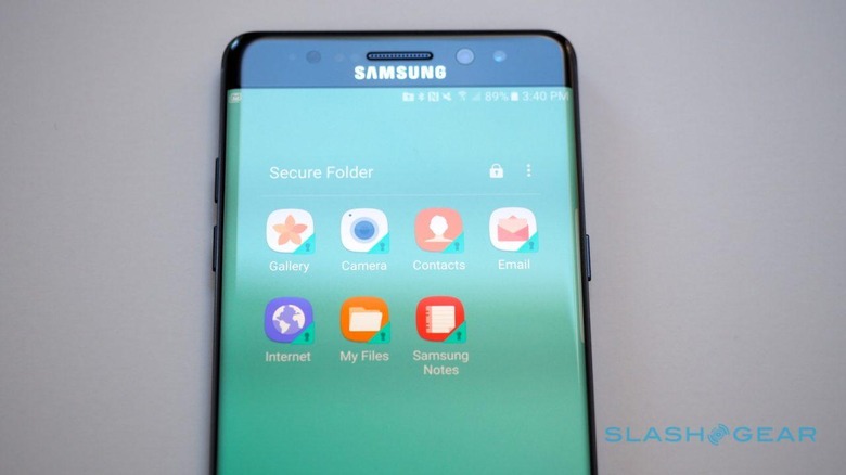 A new Secure Folder works basically as a separate enclave for business or private data. You can lock it down with a fingerprint or an iris scan, but it's more than just a passcode protected safe space.