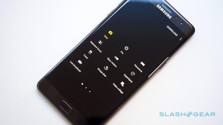 The Galaxy S7's front-facing 5-megapixel, f/1.7 camera also makes the jump to the new Note, but Samsung has revamped its camera app to make it a little easier. Modes are now accessed with a swipe across to the left; filters to the right; swiping up or down flips between the front or back cameras.