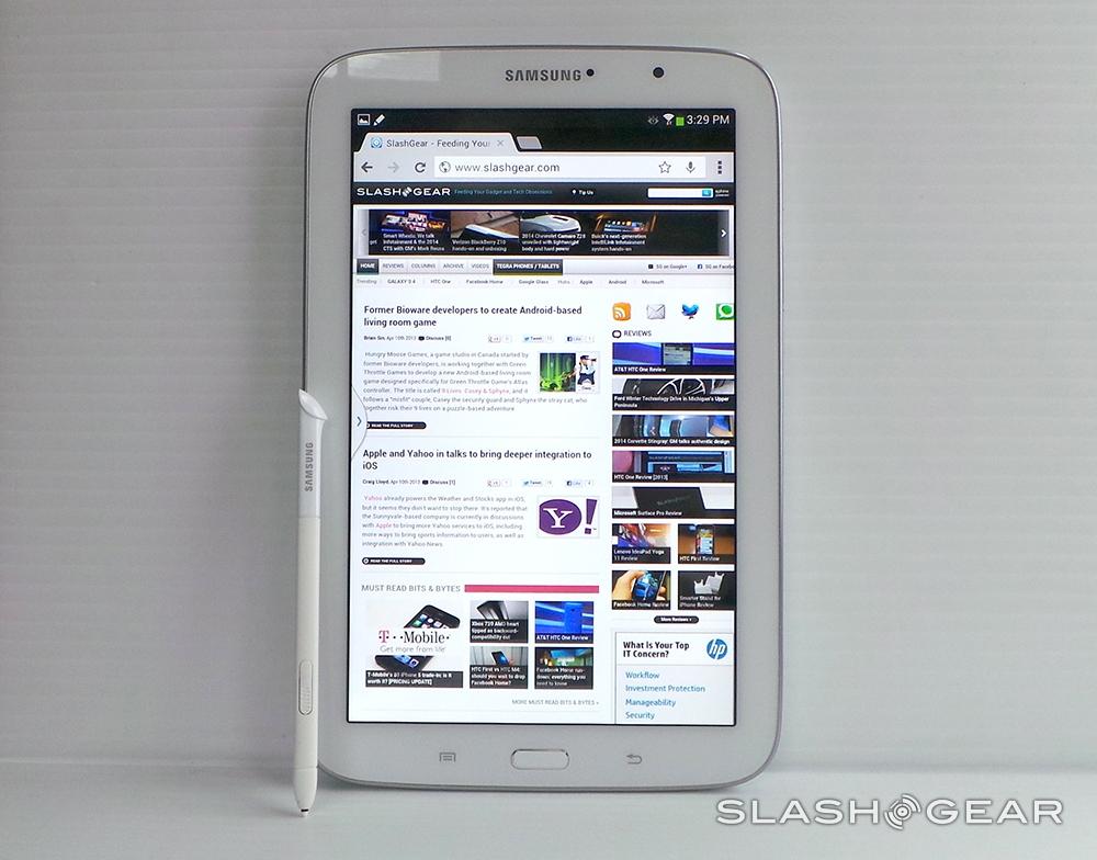 This tablet is just a bit too big to hold comfortably in one hand while you're walking around and penning in notes with the S-Pen with the other. If you want top-notch on-the-go note-taking, you'll want to check out the original Galaxy Note or the Galaxy Note II – they'll even fit in your pocket! With the Galaxy Note 8.0 you'll be popping your hardware out at the desk or on the bus more than likely. This device is just large enough to join the Galaxy Note 10.1 with the lap-balance family of tablets.