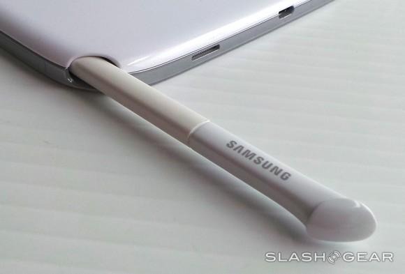The S-Pen you get here fits snug inside the side of the tablet right under the right-hand side when you hold the tablet in portrait mode. This particular S-Pen and tablet has a newly advanced set of features that work exclusively with one-another. One of the first – and perhaps most important – of these is the pen's ability to tap the menu and back buttons below the display where past Galaxy Note devices were unable to do so.