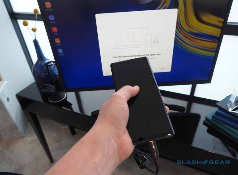 Samsung DeX enters its third generation with the Galaxy Note 9, and it's getting even easier to hook up an external display and turn the smartphone into a PC replacement. Unlike the docking stations of before, the Note 9 can switch into DeX mode with a USB-C to HDMI adapter. Samsung will sell you one, but any spec-compliant dongle should work.