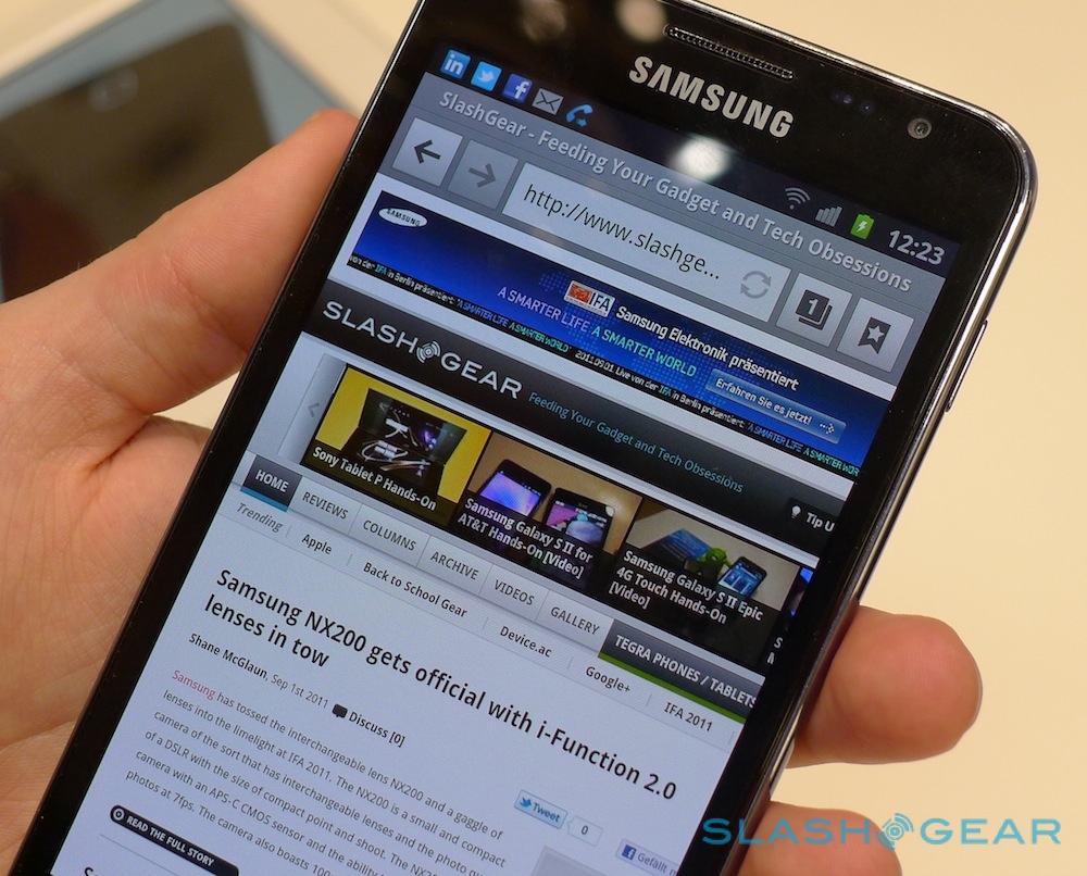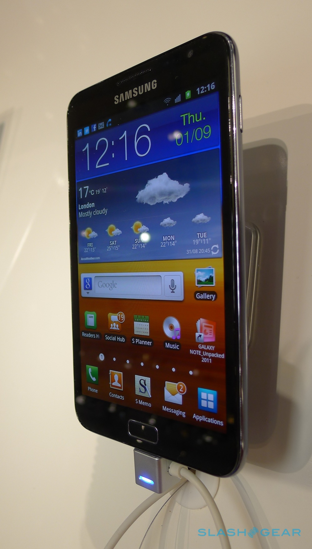 Can Samsung save the stylus? The Samsung Galaxy Note is the company's main surprise at IFA 2011 this week, a MID-scale super-smartphone that offers a blend of phone and tablet functionality with a dash of paper notebook thrown in too. We thought the Galaxy S II was big, with its 4.3-inch display, and then were slightly more surprised by the Inspire 4G when that stepped up to 4.5-inches. The Galaxy Note, though, surpasses them both, with its huge 5.3-inch panel. Samsung brands it as HD Super AMOLED, and claims it's the statistical midpoint discovered when consumers were polled for their thoughts on ideals of front visibility, single-handed operation, pen input and calling. Read on for our hands-on first impressions.
