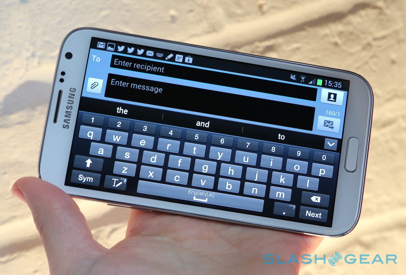 If you'd rather not use handwriting recognition – which requires reasonable penmanship – there's a spacious onscreen keyboard which becomes practically obscene in its size when the Note II is in landscape orientation. New for this second-gen model, though, is the ability to offset the keyboard for one-handed use: you can choose to shrink it down and nudge it over to the left or the right of the phone, making it easier to tap with your thumb while holding the Note II with the same hand. It's an interesting approach, and worked fairly well, though the sheer size of the handset does mean it requires some balancing to keep it from toppling out of your hand.