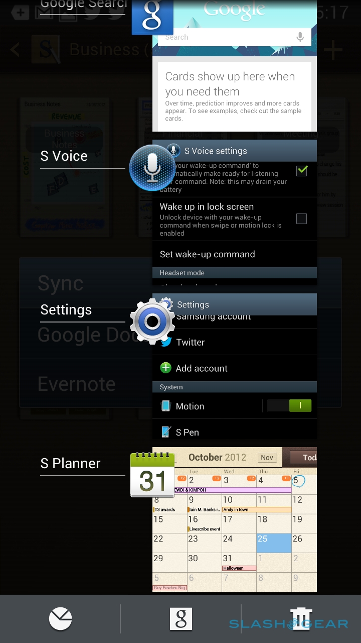 The most obvious of those changes are aesthetic, but as you spend more time with the Note II – particularly with the pen – you see the tweaks and touches that go beyond design. Many of those are familiar from the original Note, of course: you still get the S Planner calendar app, which allows you to circle dates with the stylus and generally scrawl across your agenda, and S Note with its notebooks of memos, diary entries, meeting notes, and more. S Note content can be synchronized with Google Docs or Evernote, too, which makes it far more useful than traditional notes trapped in physical notebook.