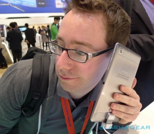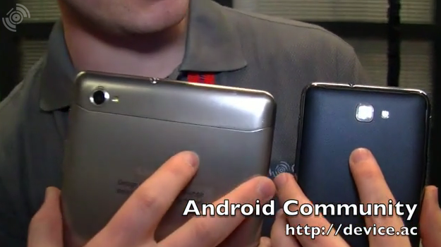Each of these devices have a massive battery capable of more than a day's worth of work. Each of these devices is capable of acting like a smartphone, with both mobile data and voice, and if you'd like to hold them up to your head to make a traditional looking phone call, you can certainly do that. Have a look and Chris Davies doing so here, first with the Galaxy Note: