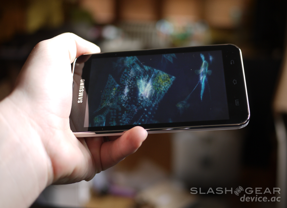 The Galaxy Player uses a version of TouchWiz that's been replaced since its original release earlier this year by the versions on the Galaxy S II as well as the in-between version on the Samsung Stratosphere. You'll notice the difference in that you have none of the perks outlined back in August and there'll be that memorable "candy coating" around your icons in the apps drawer.