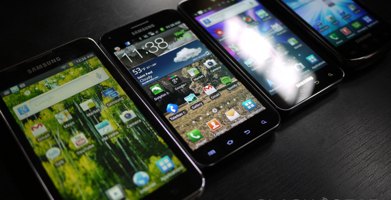 The Galaxy S II comes in several different shapes and sizes here in the United States, two of the more powerful ones being the two we've got right here, the Galaxy S II from AT&T and the Galaxy S II Epic 4G Touch. The first of two has a 4.32-inch display at 480 x 800 resolution and a 1.2GHz dual-core processor made by Samsung. The Epic 4G Touch has the same specifications on a 4.5-inch display. This means that the pixel density is down but the power is the same. The Galaxy Player 5.0 has a single-core processor at 1Ghz that's also made by Samsung and a display that's 5-inches large with the same 480 x 800 pixel resolution. In addition, the Galaxy Player has a TFT LCD display while the Galaxy S II units both have a Super AMOLED Plus display. Have a look here to see if you can spot the differences in quality: