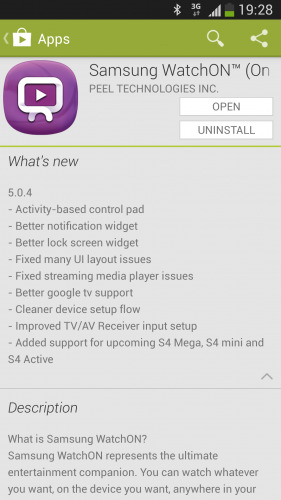That update – to the remote control software Samsung uses to turn its phones and tablets into universal remotes – name-checked not only the Galaxy S 4 Active but two other handsets. Version 5.0.4 of the software now has support for the S4 Mega and S4 mini, according to this screenshot from SamMobile; Samsung since updated the changelog to remove any mention of the unannounced phones.