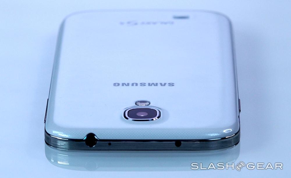 Side by side, and how Samsung has achieved that becomes obvious. At the top, the earpiece has been squashed up right next to the chromed plastic trim, flanked by the proximity sensor, ambient light sensor, and front-facing camera. The screen butts up closer to the sides of the phone, too, and extends further down into the chin, leaving the physical "home" button and touch-sensitive, backlit "back" and "menu" keys somewhat cramped. The angle of curve of the corners has reduced, losing a little of the "pebble" silhouette the old phone has. You still get the side-mounted power key and volume rocker, as well as a microUSB port and 3.5mm headphone socket.