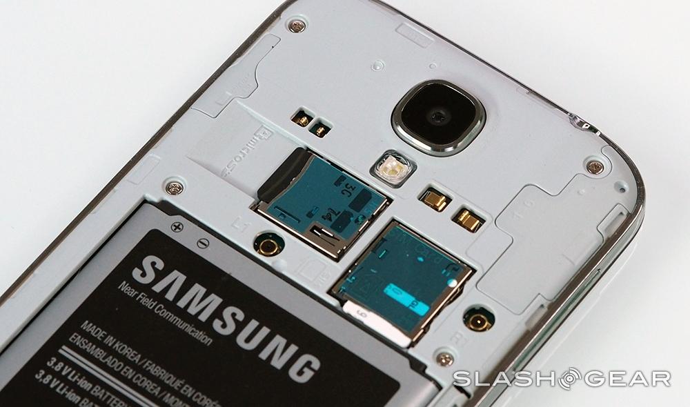 It's inside that things get really impressive, however. Samsung has boosted the memory to 2GB, and will offer 16GB, 32GB, and 64GB versions, all with microSD slots happy with up to 64GB cards. There's WiFi a/b/g/n/ac (2.4/5GHz) complete with WiFi Direct, DLNA, hotspot, and Miracast support; Bluetooth 4.0; NFC; GPS/GLONASS; USB On-The-Go for external memory and peripherals; MHL-HDMI 2.0 for hooking up a TV or projector (with the right adapter); and an infrared port to turn the GALAXY S 4 into a universal remote. Sensors include an accelerometer, gyroscope, and digital compass, but also a moisture-measuring hygrometer, a thermometer, and a pressure-tracking barometer.