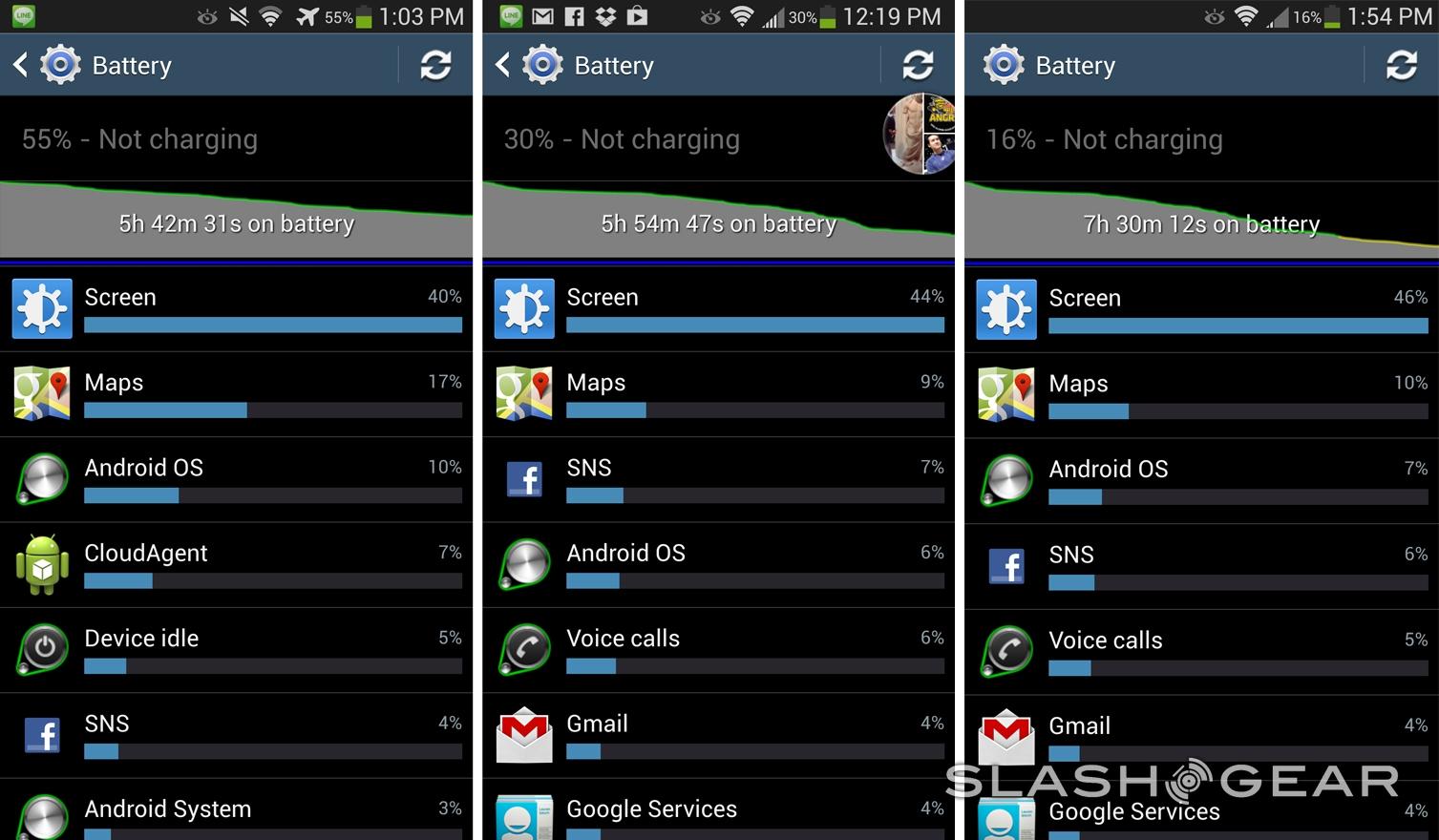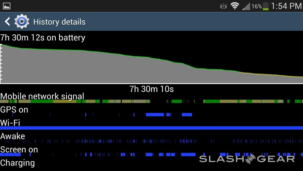 Even if you're draconian with your apps, that deliciously huge, bright display takes its toll on how long the GALAXY S 4 can run for. In fact it proved responsible for, on average, roughly 40-percent of the battery drain. Samsung does make some attempts at prolonging power, such as Smart Mode which remembers which locations you use WiFi and selectively switches it on and off when you get near, but even using WiFi we had mixed results. Unfortunately Samsung was unable to provide an LTE variant of the GALAXY S 4 for review, so battery testing while on 4G will have to wait.
