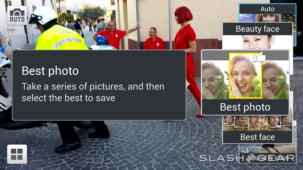 There's also Sound & Shot, which attaches a short audio clip to each still image – Samsung says it's to capture the mood when you took the photo, though we prefer HTC's combination of sound, images, and video with the Zoe system – along with Drama Shot, which combines a sequence of burst-photos into a single collage. You can create short gif images without needing to reach for a third-party app, or trigger a photo by calling out to the phone, just as we saw Samsung implement on the Galaxy Camera.
