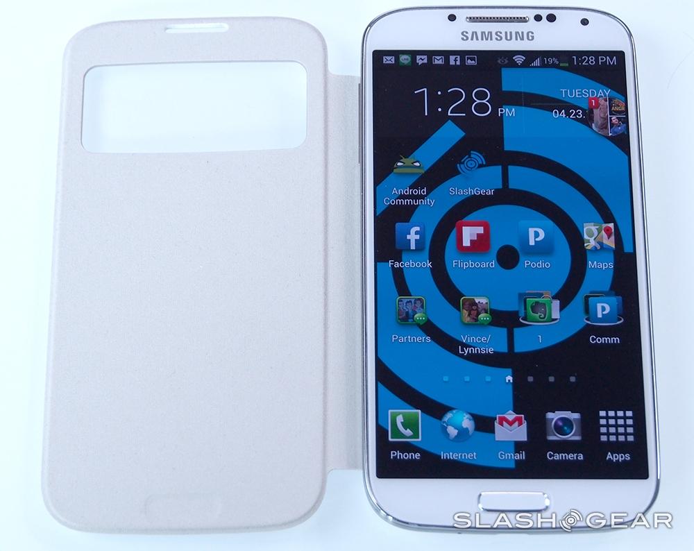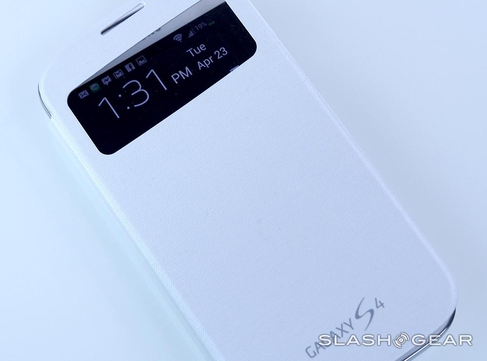 Samsung has a number of official accessories for the GALAXY S 4, but arguably the most interesting is the S View Cover. Like the flip cases the company has previously offered for the Galaxy S III and Note II, it flaps over to protect the display but adds minimal bulk, fixed to a replacement battery cover rather than fitting over the phone.