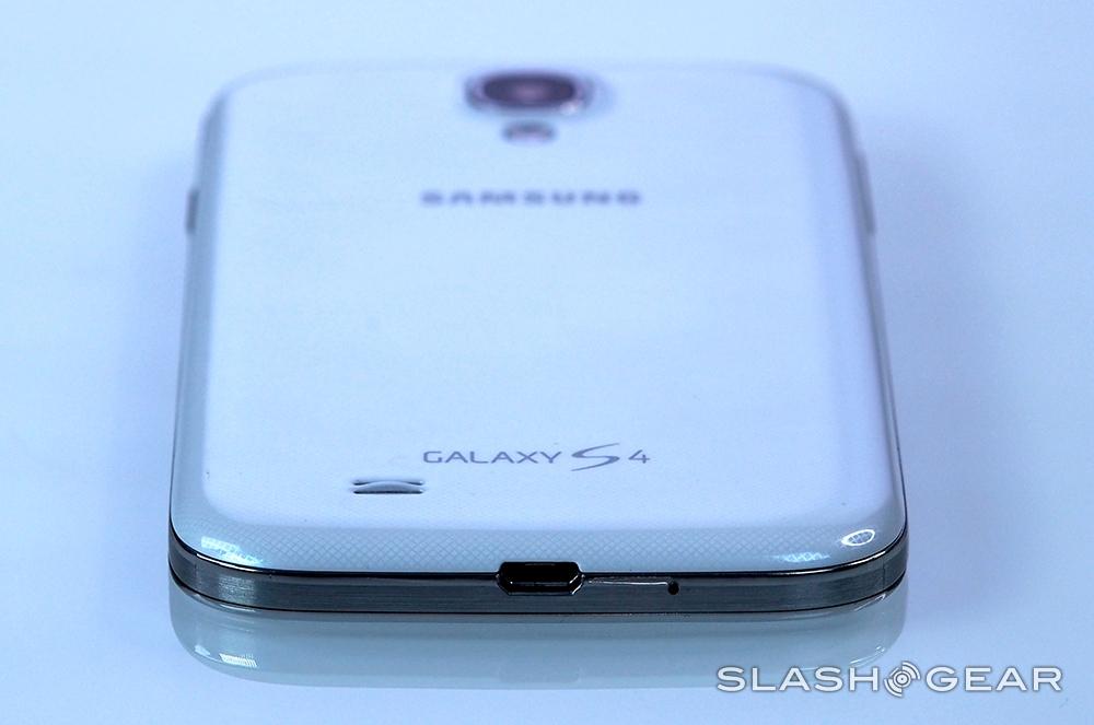 Interestingly, although it's officially thinner, the more squared-off sides of the GALAXY S 4 can leave it feeling thicker in the hand. The more pronounced taper of the Galaxy S III has the effect of making it feel like a slimmer device. Samsung has given the S 4's edges a slight knurling, which makes it a little easier to grip, though the plastics are still glossy and slippery. That makes slipping the GALAXY S 4 into a pocket or bag an easy thing, but does also mean it can be easy to drop.