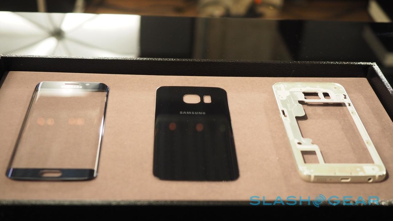 The result: no more plastic back, and instead Corning's latest Gorilla Glass 4 sandwiching a brushed metal frame. Four colors of each device will be offered, with White Pearl, Black Sapphire, and Gold Platinum available across the board, while the Galaxy S6 will also be available in Blue Topaz, and the Galaxy S6 edge in Green Emerald.
