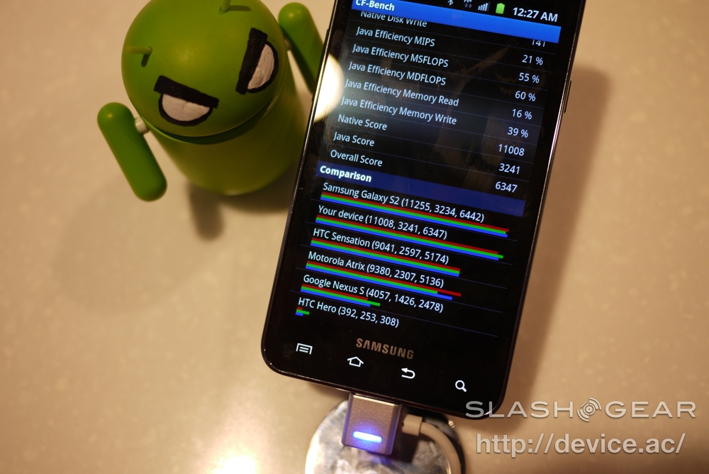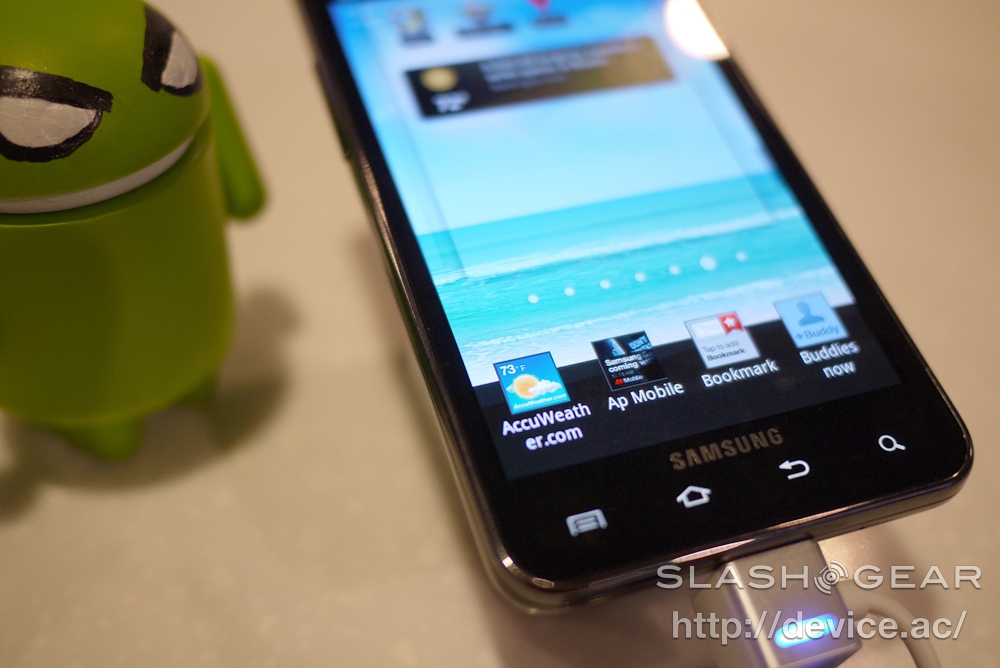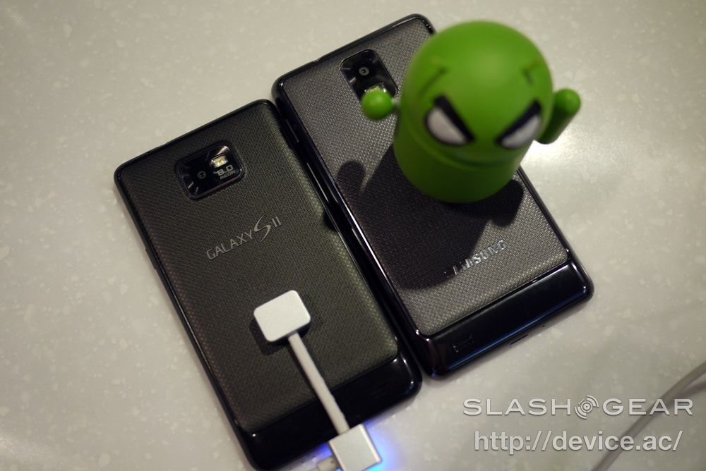 Aside from that, you've got the 8.89mm thin chassis, thinner than the other two versions of the Galaxy S II revealed today, 8 megapixel camera on the back, 2 megapixels on the front, 1080p video recording, Android 2.3.4 Gingerbread, optional USB host kit, optional HDMI connector (the same one you'll find included in the Infuse 4G package, right out of the box that is,) and a bunch of goodies like Wi-Fi calling, the game NOVA 2 HD pre-loaded, Bluetooth 3.0, and Wi-Fi hotspot for up to 8 devices if that's your desire.
