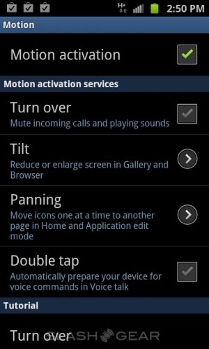 Samsung's Touch Wiz also has a unique new feature with the just announced 4.0 for the Galaxy S II in the US and that is Motion Control. Once enabled, users can move icons on homescreens, zoom on images and webpages and more all by touching the screen and moving or panning the device rather than dragging multiple fingers. It's quite neat and made moving icons from screen to screen extremely easy.