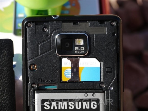 The hardware we all know plenty about — plus was laid out in the video above but just in case here are a few more details. We have Android 2.3 Gingerbread, a 1.2 GHz Samsung Exynos processor, 1GB of RAM, and 16GB of internal storage under the hood. Optional micro-SD support for extra storage, 8 megapixel camera around the rear with LED flash and a 2 MP front shooter for video chatting and more. All of that neatly packed into an ultra lightweight and thin design.