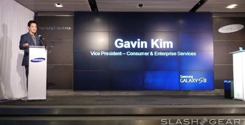 We have Samsung's Vice President of Consumer & Enterprise Services Gavin Kim to thank for the full rundown of the Samsung Galaxy S II's full new features rundown, all of it presented by him on his very own Galaxy S II device through its MHL (Mobile High-definition Link) port made capable of sending out a mirrored-display through a normal, everyday HDMI cable. You may remember the same functionality from the Infuse 4G, a device which was in many ways the herald of the Samsung Galaxy S II as it's officially announced today. What Kim has for us on stage in NYC at the GSII big reveal event is a look at everything you should expect from the three announced devices today as they compare to the original GSII released a few months ago internationally.