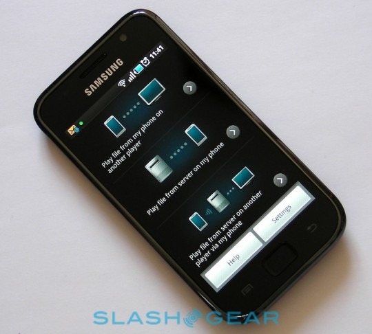 More useful is Samsung AllShare, which takes DLNA media sharing and puts a cellphone-friendly face on it. AllShare allows you to stream multimedia from the Galaxy S to a WiFi-connected player – whether a standalone audio system, network-connected HDTV or a computer – or vice-versa, or even to act as a remote control for your media server, selecting files to play remotely. Video, audio and images can all be streamed, and the Galaxy S simply showed up as a media source in compatible apps.