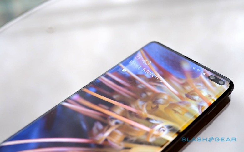 On the S10, it looks like someone took a hole-punch to the screen. The S10+, though, has two front cameras, and so its cut-out is a lozenge shape.