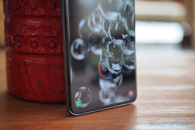 Punctuating the top of the AMOLED is a small, central hole for the selfie camera. Samsung hides its in-display fingerprint sensor in the lower portion of the screen, but it can be a frustrating experience. It uses the same ultrasonic technology as its predecessor, which isn't the fastest out there, but more annoying is the relatively small area in which you have to press your finger. I can't really recommend you use facial recognition in its place, either, since even Samsung warns it's more for convenience than the sort of security you might expect from, say, Apple's Face ID.
