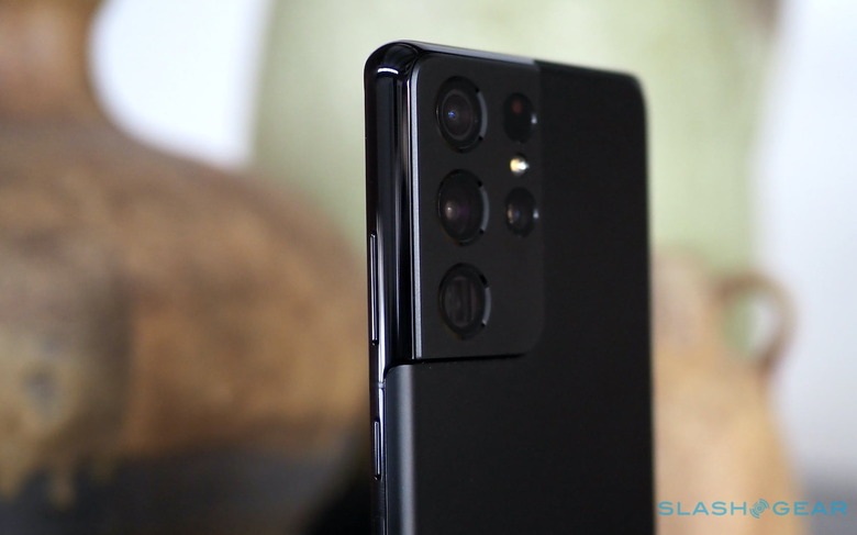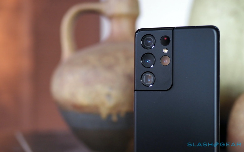 No surprise, that big camera bulge is full of sensors. For 2021, Samsung offers a 108-megapixel wide camera with phase detection autofocus, optical image stabilization (OIS), and an f/1.8 lens. It's paired with a 12-megapixel Dual Pixel ultra-wide with a 120-degree field of view, and not one but two telephoto lenses, both with 10-megapixel sensors. The first is a 3x optical zoom, the second a 10x zoom, both with OIS. Finally, there's a laser autofocus sensor and an LED flash.
