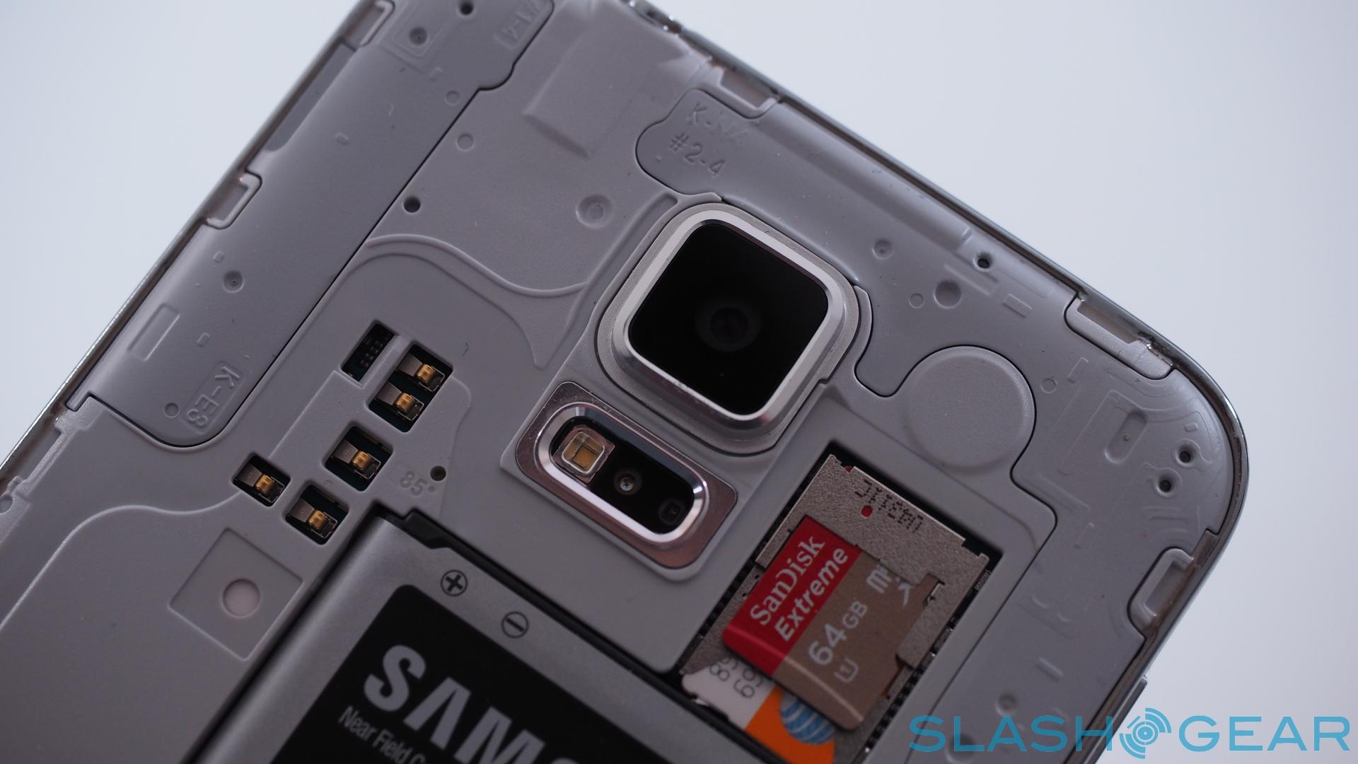 Samsung will offer 16GB and 32GB versions of the Galaxy S5, carrier depending, though the microSD slot under the removable back cover is content with up to 128GB cards. It's next to the removable battery, now clocking in at 2,800 mAh – a 200 mAh increase from the Galaxy S4 – which remains a key marketing point for Samsung.