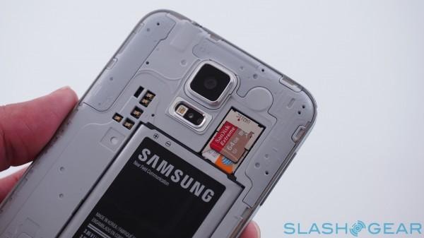 Samsung will offer 16GB and 32GB versions of the Galaxy S5, carrier depending, though the microSD slot under the removable back cover is content with up to 128GB cards. It's next to the removable battery, now clocking in at 2,800 mAh – a 200 mAh increase from the Galaxy S4 – which remains a key marketing point for Samsung.