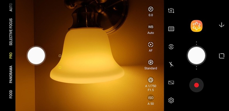 It means the Galaxy S9 can offer both an f/1.5 lens for low-light conditions, and an f/2.4 lens for brighter scenes. In Auto mode, the camera flips between them by itself, gaging the lighting and adjusting accordingly. Alternatively, you can swipe into Pro mode and tap between the two lenses yourself.