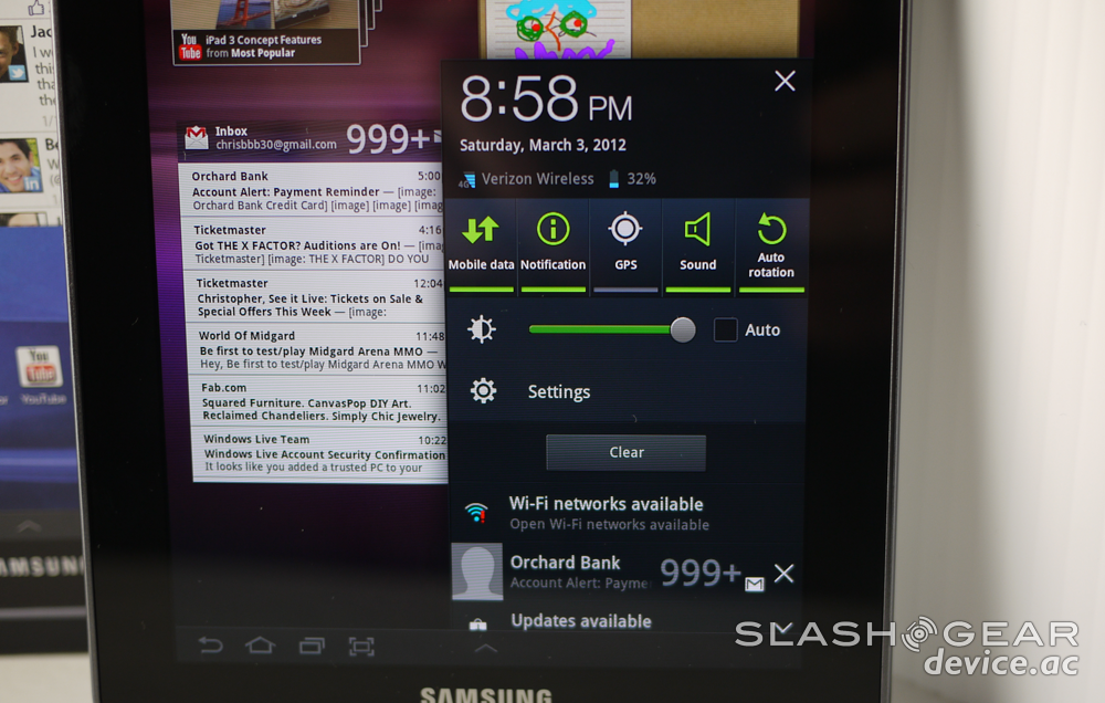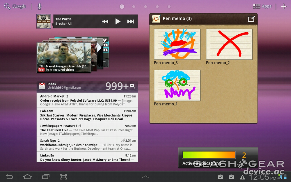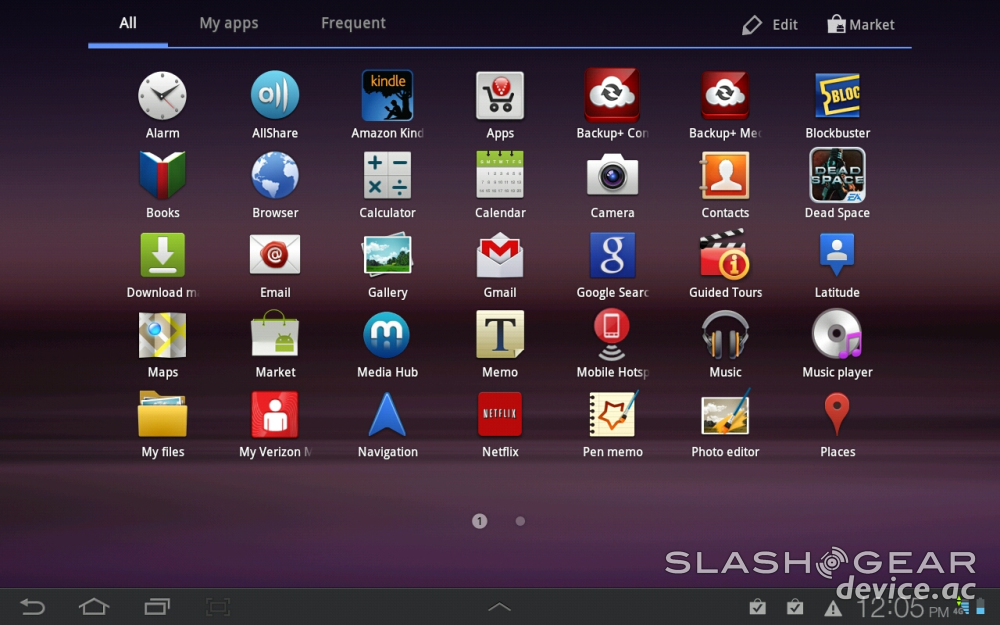 What you've got here is a software experience made specifically for the tablet, not quite Ice Cream Sandwich, but just about as close as you're going to get without getting there. Samsung has been adamant about their want to update a whole swathe of their Galaxy devices inside the Summer months, so we're hoping this device wins out in that battle as well. Meanwhile this setup is perfectly workable for your daily tablet needs. Also of note, even though it's not unique to this device: the Android Marketplace is now optimized fully for devices with displays much larger than a smartphone – so you're in business here from the top of the software experience down to the base.