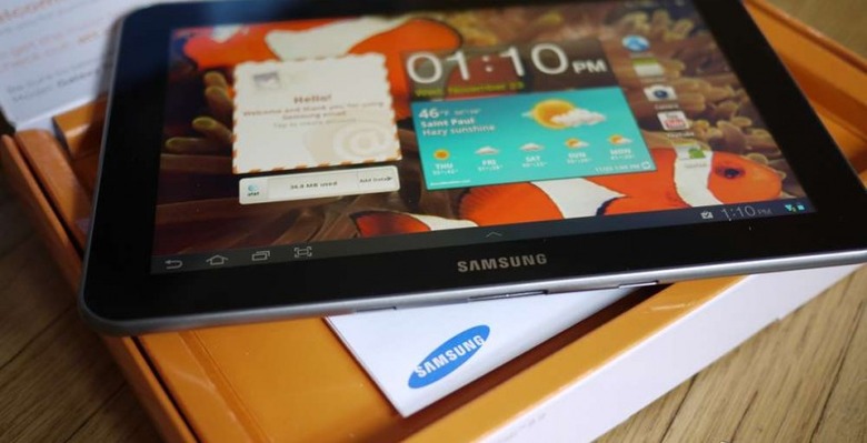 This week we get our first glimpse of what it means to hold the next addition to the Galaxy Tab family in our hands, the slightly larger than mid-sized Galaxy Tab 8.9 for AT&T's LTE network. What we'll be doing in the post you're looking at here is giving it a relatively brief hands-on look as well as a few photos of how it looks in and out of the box. What you'll find is that this certainly has little in the way of differences from the rest of the Galaxy Tab line (starting with the 10.1, that is), save for its size which may indeed be the perfect one if you're a Goldilocks sort of person. The Galaxy Tab 8.9 not nearly as obtuse as the original Galaxy Tab, it's not as large as the 10.1, and it's got just a slight bit more screen space than the 7.7. Samsung appears to be covering all the bases: is this home plate?