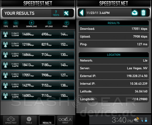 Have a peek at the LTE speeds as recorded in a real live AT&T 4G LTE city, one of the few in the united states today. Note that this device can also access AT&T's much larger HSPA+ network which also goes relatively quick.