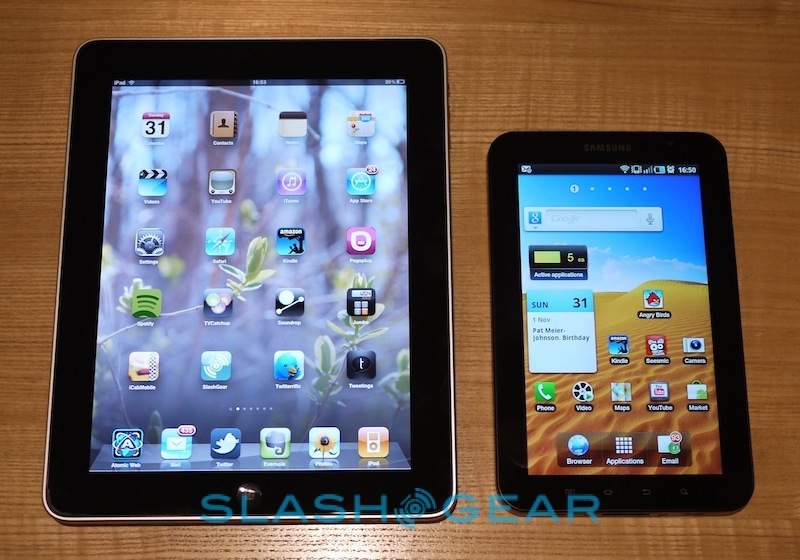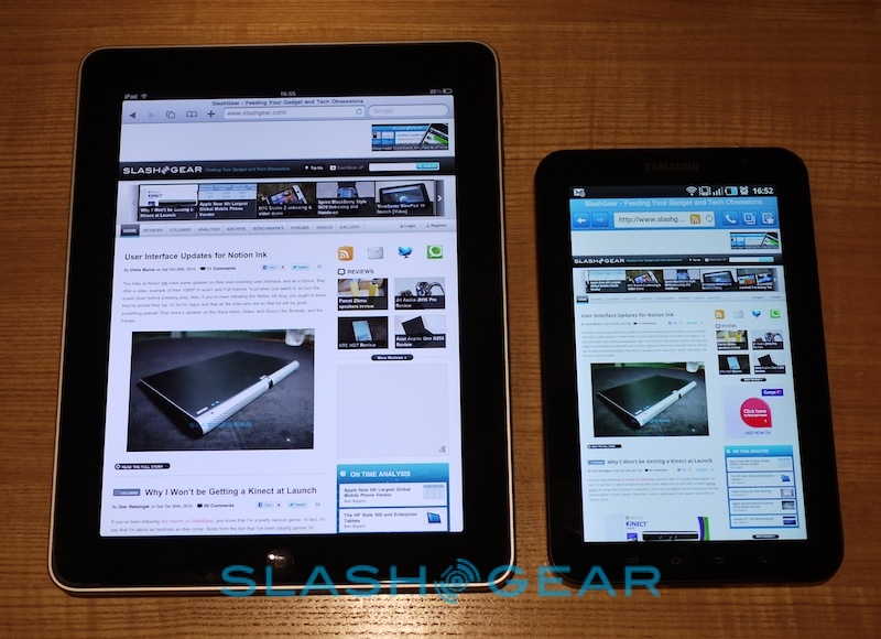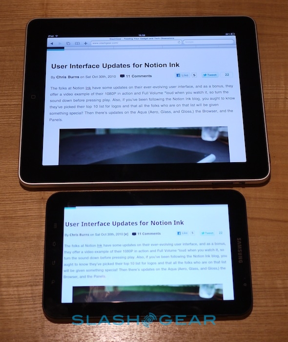 You also get more flexible hardware, with two cameras, voice-call support in the European Tab, HDMI connectivity with an optional dock, and a form-factor that's more portable, without a significant impact on usability or battery life. The value of Samsung's own apps can't be understated, however; they're what lift Android 2.2 on the Galaxy Tab from being an oversized phone to a proper tablet. Right now, third-party titles don't have that same polish, but given Google, carriers and OEMs alike are looking to bigger screens we imagine developers will be up to speed with them sooner rather than later.
