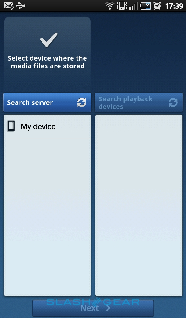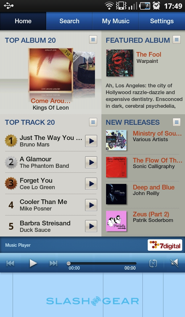 Playback buttons appear in the track browser when a track is selected, or you can stick with the regular now-playing screen that shows huge album art, control buttons, volume, optional track info, shuffle and repeat mode. Swiping across the screen skips tracks. There are various equaliser modes and sound enhancements, but no option to automatically download missing album art. If you leave the music app during playback, a shortcut is automatically added to the drop-down notification menu (complete with the name of the currently playing track).